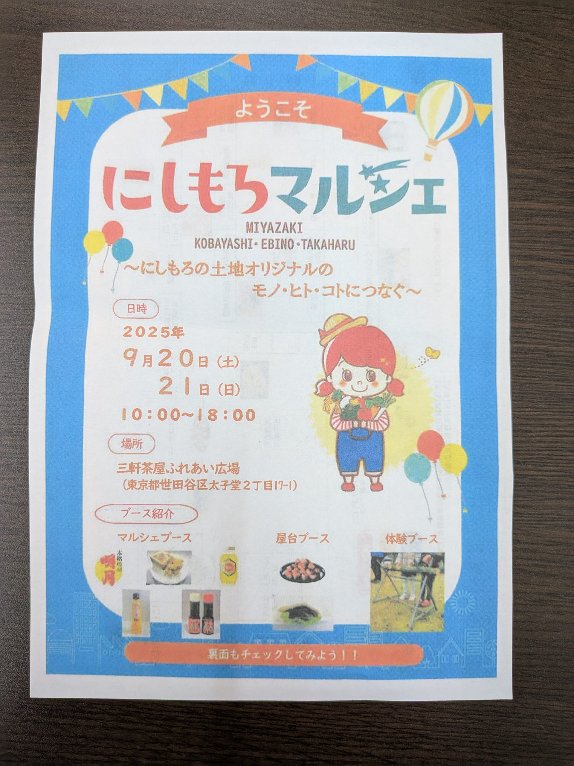 こんにちは😎 ヤナギサワです🐻 昨日茶沢通り三軒茶屋ふれあい広場にて『にしもろマルシェ』が開催されていました🌼 宮崎県小林市・えびの市・高原町の特産品が沢山ありましたよ~👌 わたしは高原町にお店を構えているケーキ屋さんの チーズケー...