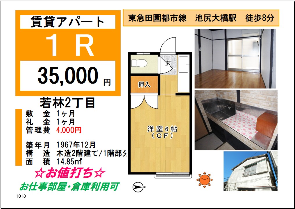 お値打ち物件! お風呂・洗濯機置き場無しですが 近くにコインランドリー併設の銭湯ございます! 【賃 料】36,000円 【管理費】4,000円 【所在地】世田谷区若林2丁目 【交 通】三軒茶屋駅 徒歩11分 【敷 金】1ヶ月 【...
