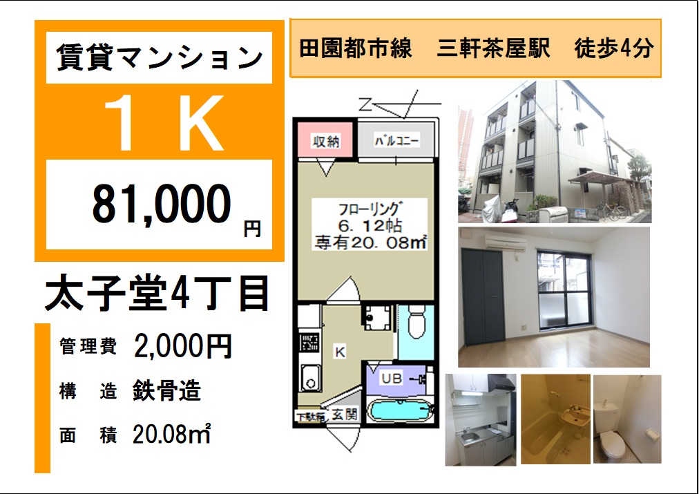 駅近🚃4分 バストイレ別 周辺の住環境良好 【賃 料】 81,000円 【管理費】 2,000円 【所在地】世田谷区太子堂2丁目 【交 通】三軒茶屋駅 徒歩4分 【敷 金】1ヶ月 【礼 金】1ヶ月 【面 ...
