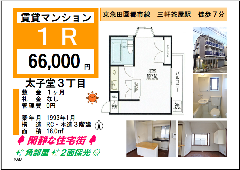 礼金なし 角部屋陽当り良好 カウンターのあるお部屋 【賃 料】 66,000円 【管理費】 0円 【所在地】世田谷区太子堂3丁目 【交 通】三軒茶屋駅 徒歩7分 【敷 金】1ヶ月 【礼 金】なし! 【面 ...