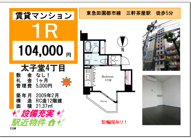 3駅利用可能◎ 敷金なし◎ 年内入居可能予定◎ 【賃 料】 104,000円 【管理費】 5,000円 【所在地】世田谷区太子堂4丁目 【交 通】三軒茶屋駅 徒歩5分 【敷 金】 なし! 【礼 金】 1ヶ月 【...