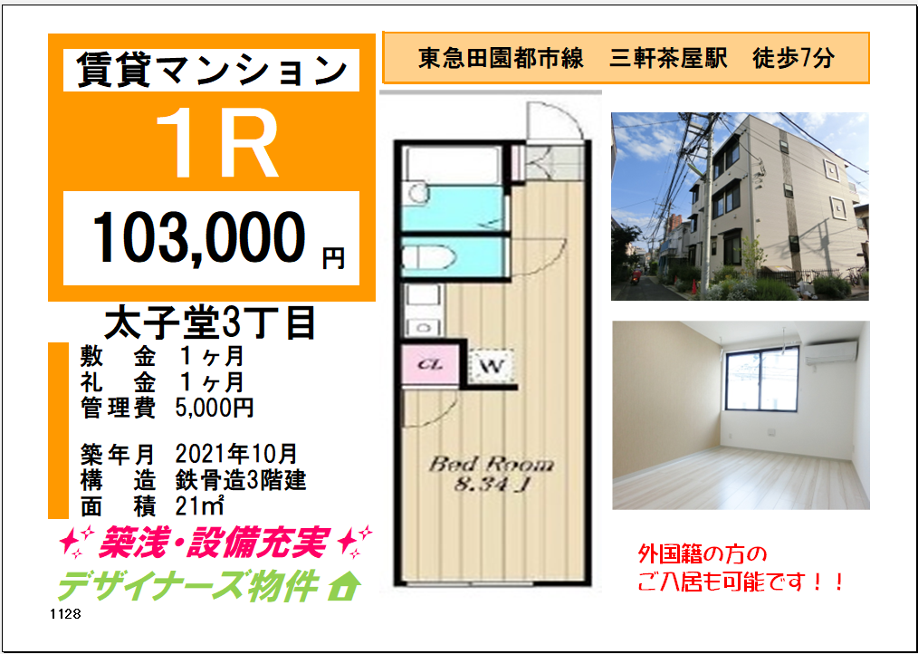 三軒茶屋駅徒歩10分以内◎ デザイナーズ物件◎ バストイレ別◎ 【賃 料】 103,000円 【管理費】 5,000円 【所在地】世田谷区太子堂3丁目 【交 通】三軒茶屋駅 徒歩7分 【敷 金】1ヶ月...