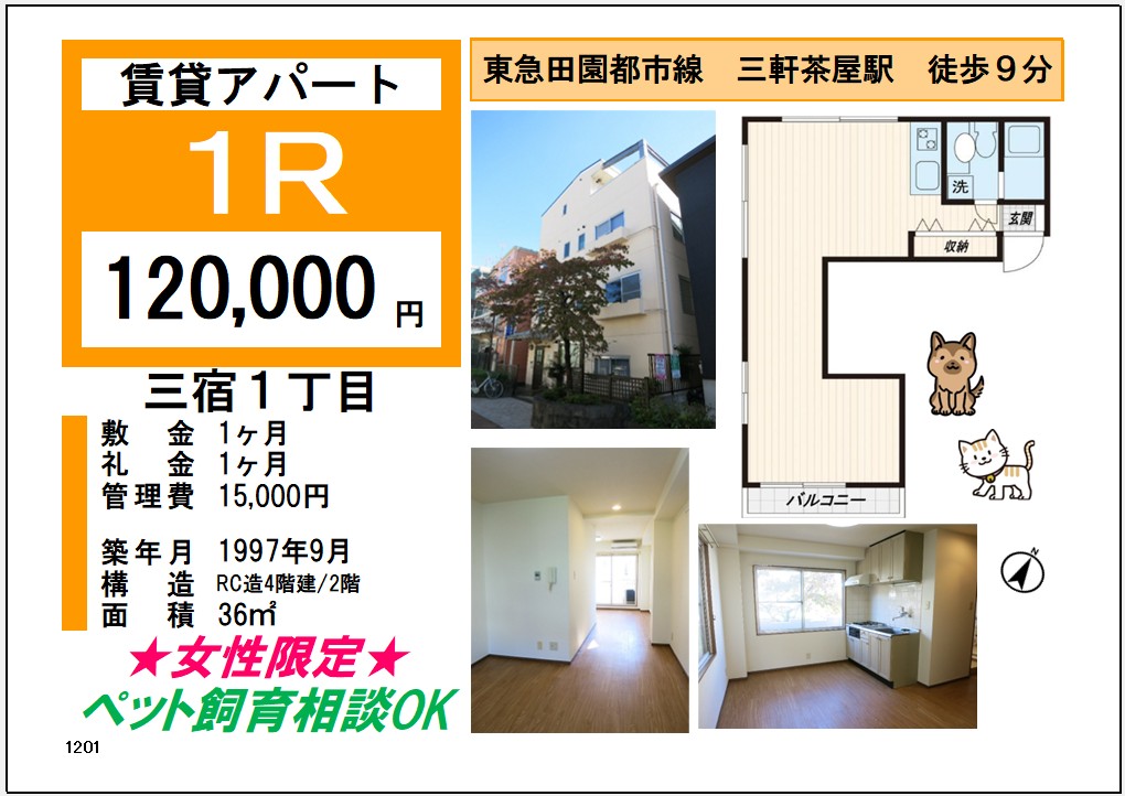 三軒茶屋徒歩9分の女性限定のお部屋になります🫡 ペット飼育相談OK‼️‼️ ※ペット飼育の場合、敷金1ヶ月積み増し 【賃 料】 120,000円 【管理費】 15,000円 【所在地】世田谷区三宿1丁目 【交...