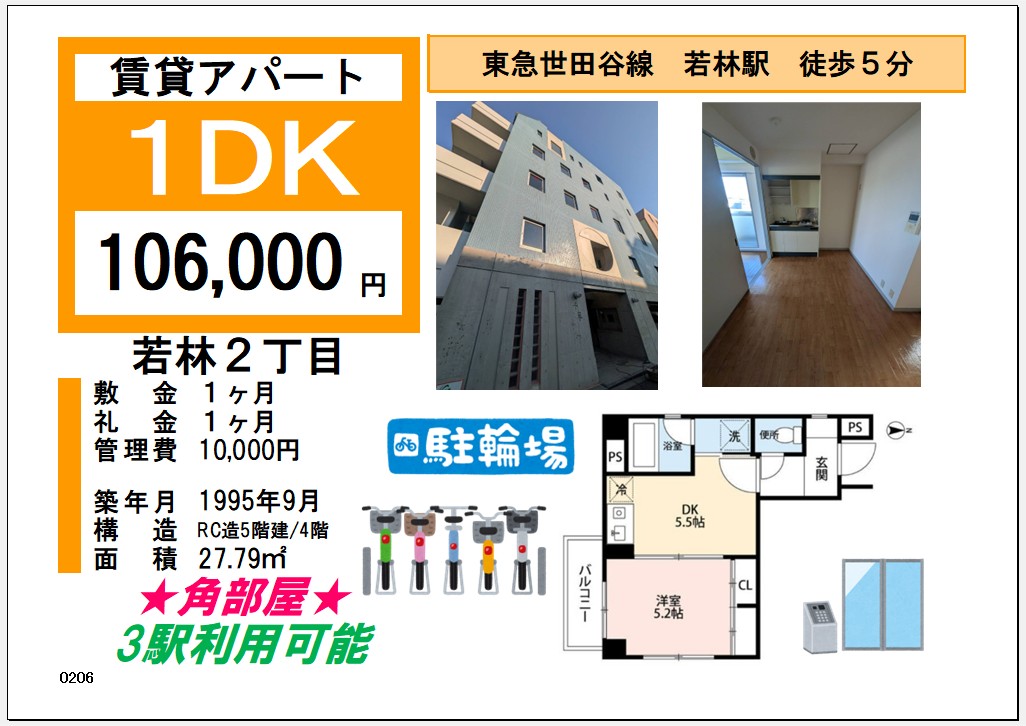 洋室5.2帖のお部屋です💁♀️ 東急田園都市線・小田急線・世田谷線の3路線利用出来ます🚋 【賃 料】106,000円 【管理費】 10,000円 【所在地】世田谷区若林2丁目 【交 通】若林駅 徒歩...