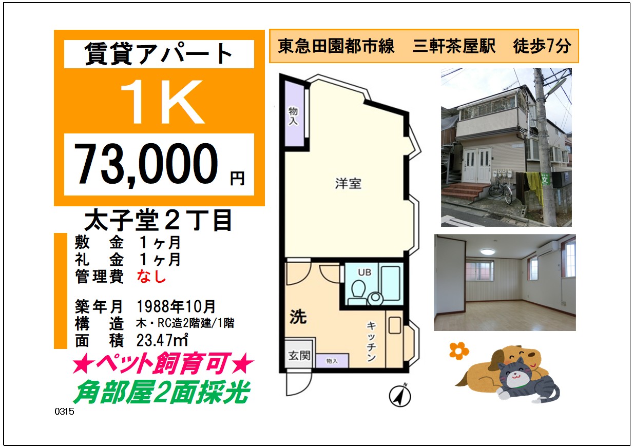 ペット飼育可のお部屋です💁♀️ 三軒茶屋駅から徒歩7分の好アクセス立地🌼 【賃 料】73,000円 【管理費】なし 【所在地】世田谷区太子堂2丁目 【交 通】三軒茶屋駅 徒歩7分 【敷...