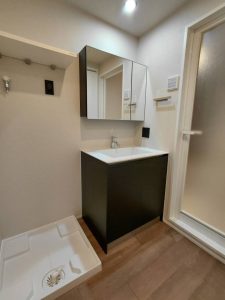 洗面所も白い壁と清潔感のある洗面台で統一感があります✨