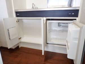 収納もしっかり、小型冷蔵庫までついてるの嬉しい!